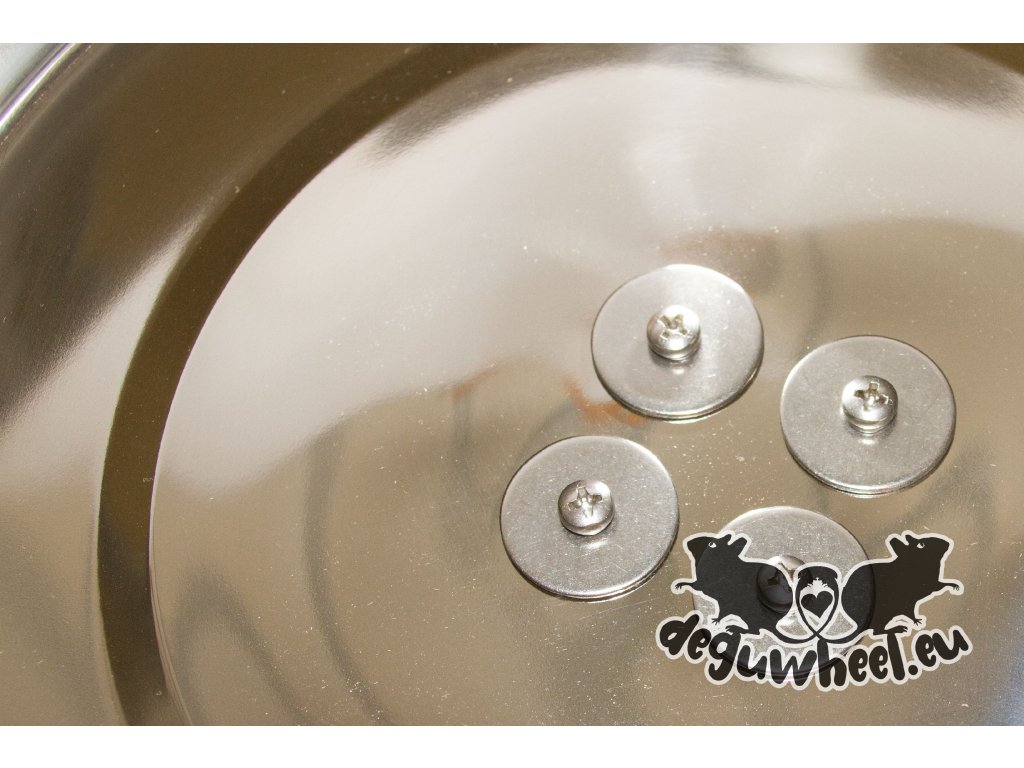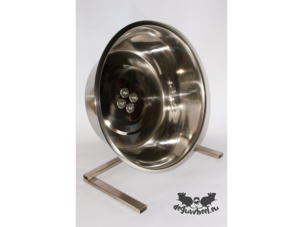Kolotoč je vyroben z nerezové oceli, která je odolná proti agresivní moči a exkrementům Vašich mazlíčků. Snadno se udržuje v čistotě, stačí utřít vlhčeným ubrouskem. Držák je svařen z jeklu 10x20x1,2mm. O tichý točivý pohyb se starají dvě ložiska zapouzdřené v inline kolečku. Výztuha na zadní straně misky je vyrobena z laminátu, zpevňuje misku a tím zabraňuje zborcení. Ze spodní strany držáku jsou nalepené protiskluzové gumy. U dřevěných, nebo lepenkových kolotočů, které sice vyjdou levněji, je problém, že se do něj nasákne moč a osmáčci jsou schopni ho rozkousat za pár dnů. To jsou potom zbytečně vynaložené nemalé prostředky a mnohdy zbydou chovatelům jen oči pro pláč. Můj kolotoč má Váš miláček na celý život a bude dělat všem radost ve dne i v noci.